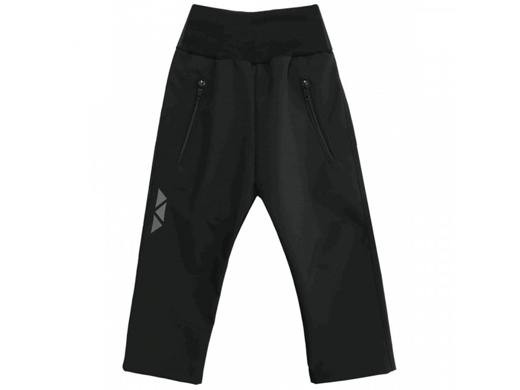 Chlapecké softshellové kalhoty letní černé jsou letní kalhoty nejen pro kluky, ale i holky. Praktické univerzální kalhoty černé barvy s černým elastanem v pase mají jednoduchý střih s rovným zakončením nohavic.