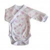 Kojenecké body EDA, dívčí má na bílém podkladě natištěné růžové medvídky. Dlouhé rukávy zakončuje jemný bílý elastan ladící s podkladem; stejně bílou barvu má i lemování ukrývající zapínání. Usměvavé body pro miminka je měkoučké, hezké a parádně se nosí.