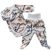 Kojenecké polodupačky Jumbo pro nejmenší mají nápaditý motiv cesty po jižních krajích, na jejímž konci čeká odměna. Přece modrý slon Jumbo! Bílý podklad krásně doplňuje vysoký bílý elastan v pase. Měkoučké polodupačky pro kluky i holčičky jsou ušity z příjemného a kvalitního bavlněného materiálu.