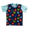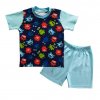 Kojenecké pyžamo s příšerkami je modro-modré zábavné letní pyžamo pro nejmenší. Horní díl je tmavě modrý s barevnými příšerkami a světle modrými rukávy a průkrčníkem. Světle modré jsou i pyžamové kalhoty.