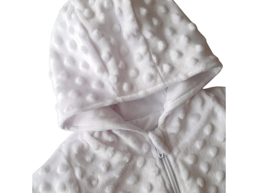 - Kojenecká mikina MINKY bílá se zapíná na praktický zip, který má nezbytnou ochranu brady. K tepelné pohodě v chladnějších dnech přispívá kapuce. Rukávy a spodní okraj zakončuje pružný elastan.